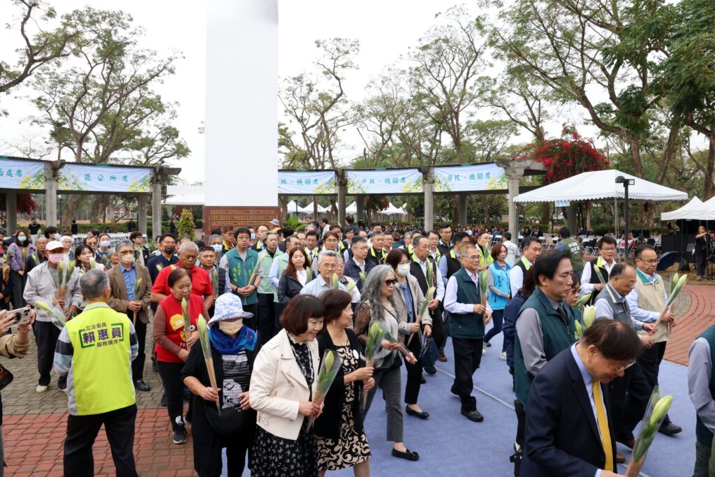 追思會在新韻合唱團悠揚歌聲中揭開序幕,隨後由市長引領全體與會人員默悼一分鐘,向二二八事件及後續白色恐怖時期的無辜受難者致上最深哀思。接續進行獻花儀式,由受難者家屬、市長及與會貴賓依序至紀念碑前獻上百合花致意,在莊重肅穆的氛圍中,傳遞社會對歷史傷痕的反思,以及對和平與人權價值的珍視。