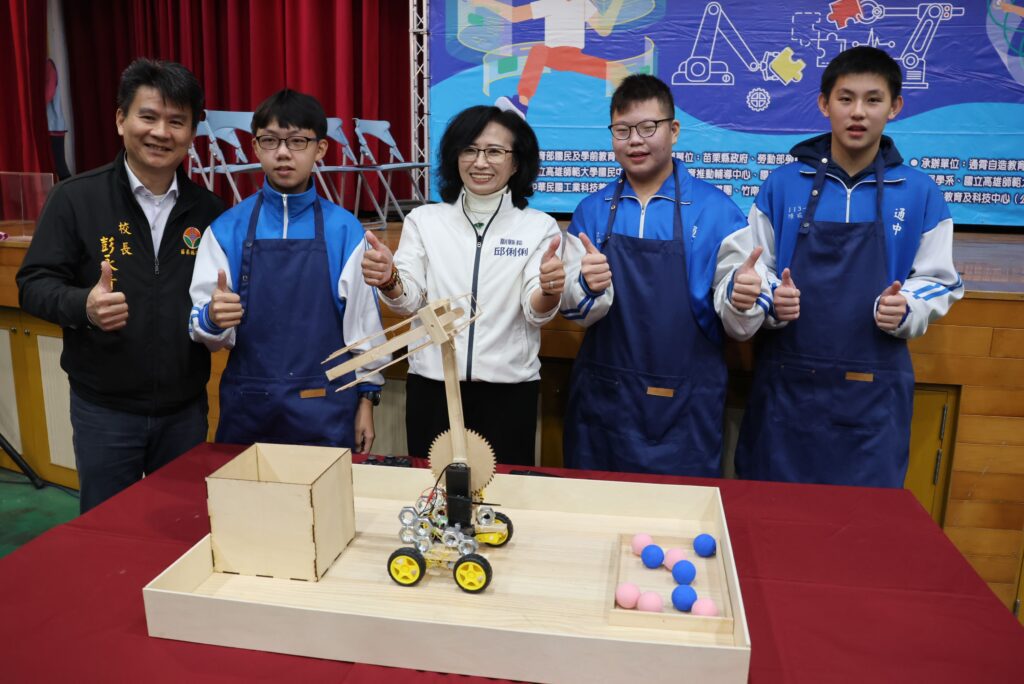 27日競賽於後龍鎮國教輔導團教師研習中心登場,副縣長邱俐俐、勞動部專員等人共同為競賽揭開序幕,副縣長頒發評審聘書以及協辦單位台師大學生感謝狀,隨後在通霄國中學生的帶領下,副縣長操作由學生製作的機械,對此感到佩服並為所有選手們加油打氣,挑戰自我為自己及學校爭光,今日獲獎隊伍將代表苗栗縣參加明年4月全國決賽
