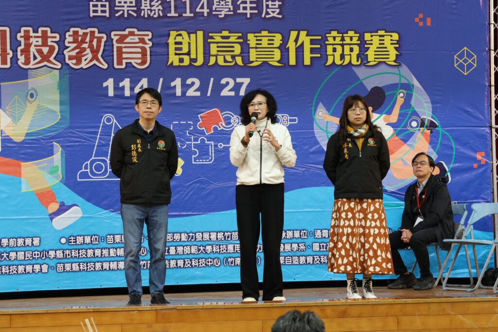 《編輯記者 蕭蓉蓉》苗栗縣政府12月27日與勞動部勞動力發展署桃竹苗分署合作共同辦理「苗栗縣114學年度科技教育創意實作競賽」,苗栗縣副縣長邱俐俐到場為競賽揭開序幕,為學子加油打氣,強調這不只是一場比賽,而是一個縣市為孩子未來所做的準備,透過科技讓孩子能理解世界、也能回應世界的方式。