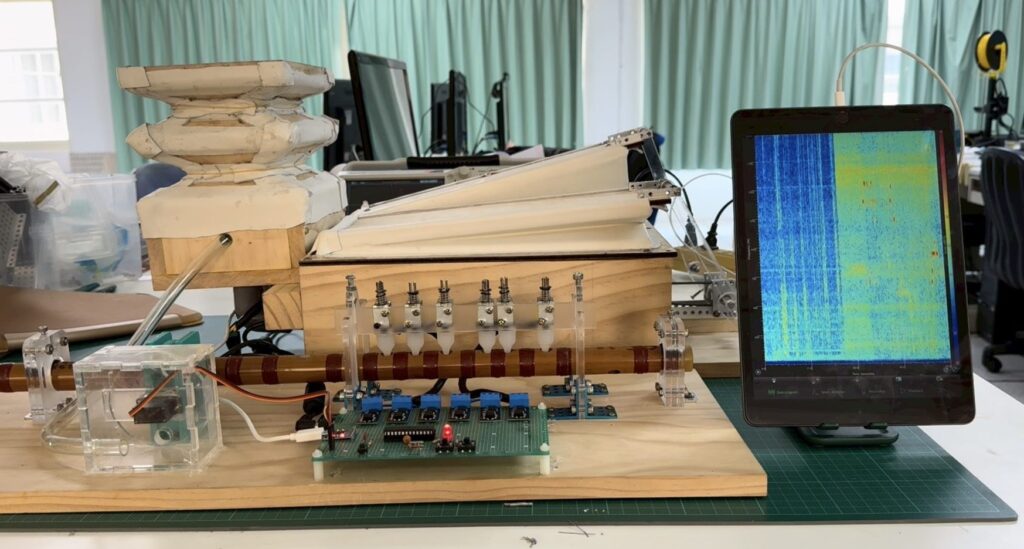 本市內湖高工獲獎作品「應用多任務學習神經網路建構可識譜六孔竹笛機器人」(A Multi-Task Learning Neural Network-Based Six-Hole Bamboo Flute Robot for Automatic Sheet Music Reading and Performance),結合人工智慧、多工學習神經網路、機電整合與音樂演奏應用,能夠讀譜、控制氣流、靈活按笛孔,模擬人類的吹奏技巧,展現高度跨域整合能力,不僅是娛樂表演的突破,更代表機器人精密控制、人工智慧音樂應用與仿生技術的發展,深獲國際評審肯定!
