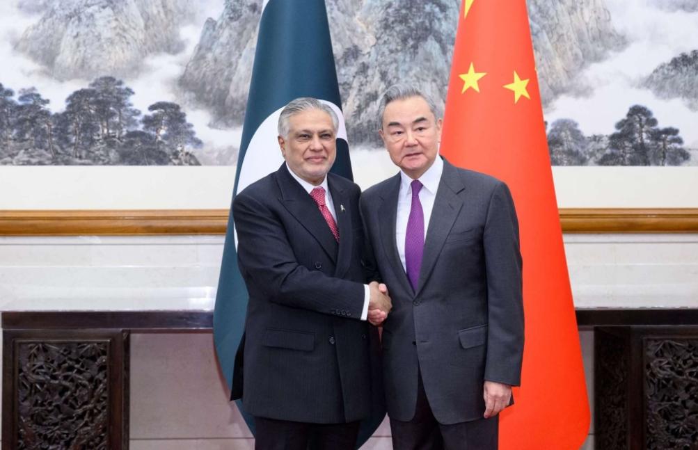 圖像加註文字 巴基斯坦外交部長穆罕默德·伊沙克·達爾(左)與中國外長王毅(右)在北京會面後,雙方聯合提出了一項五點計劃