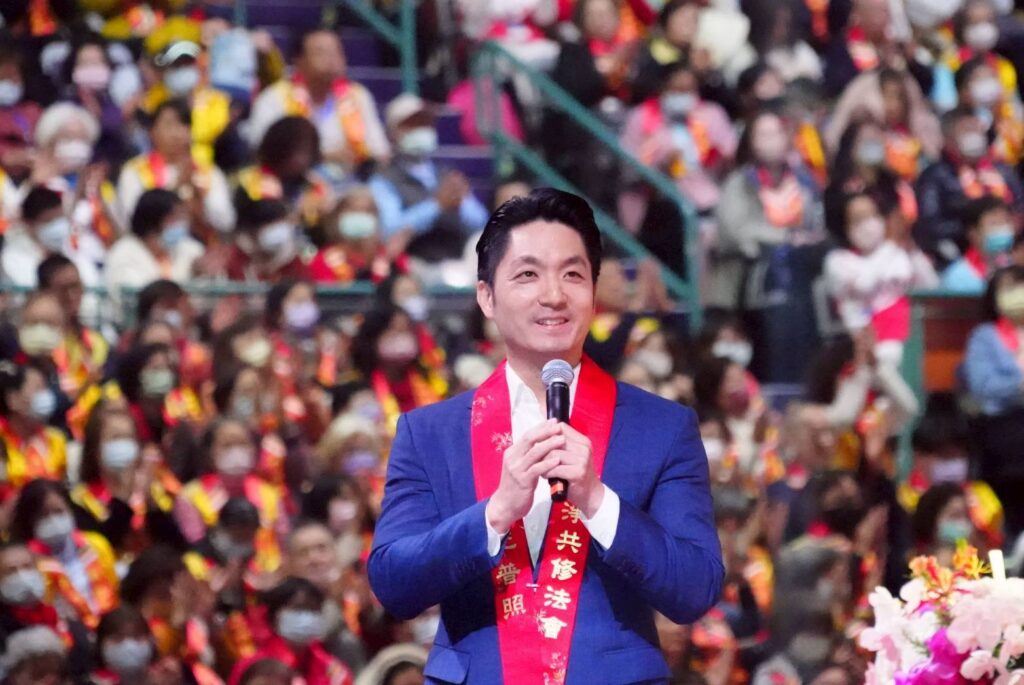 臺北市長蔣萬安今(8)日出席由國際佛光會中華總會主辦的「為世界和平祈願祝禱-2026年禪淨共修獻燈祈福法會」,共同為臺灣祈福祝禱。蔣萬安表示,今年適逢佛光山開山60週年與星雲大師百歲誕辰,特與大家一起透過禪淨共修感受佛法帶來的安定力量,並祈求臺灣風調雨順、國泰民安,也祝福臺北市平安順利。