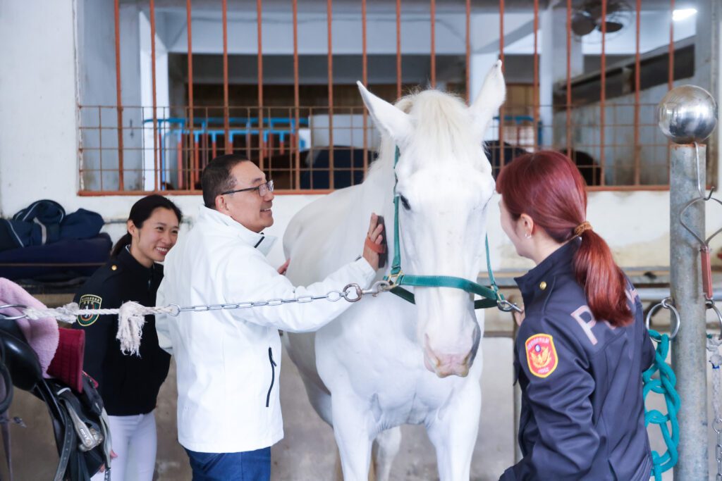 隨後,侯友宜在馬術教練及騎警隊員的指導下,體驗上馬、步伐控制等基本馬術訓練。侯友宜說,騎馬的動作看似輕鬆優雅,實則難度高,不僅需要高度的專注力、平衡感及肌力,更要仰賴長時間的訓練才能與警馬培養出絕佳默契。他大讚隊員們無論天氣都堅持訓練,在各種環境下保持最佳狀態執勤,專業表現實屬不易。