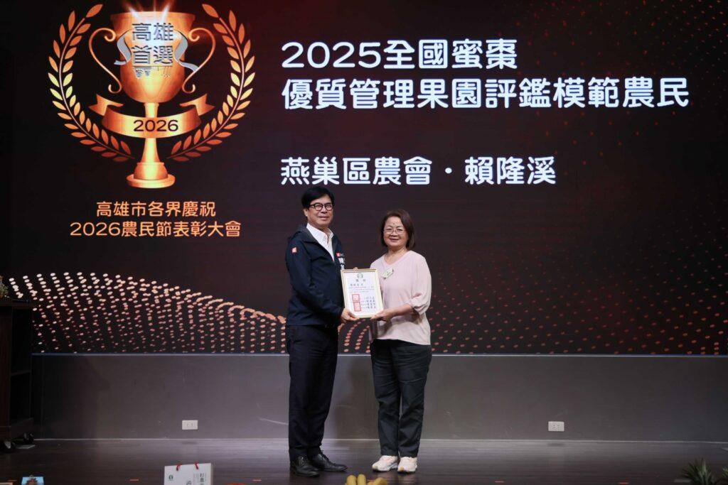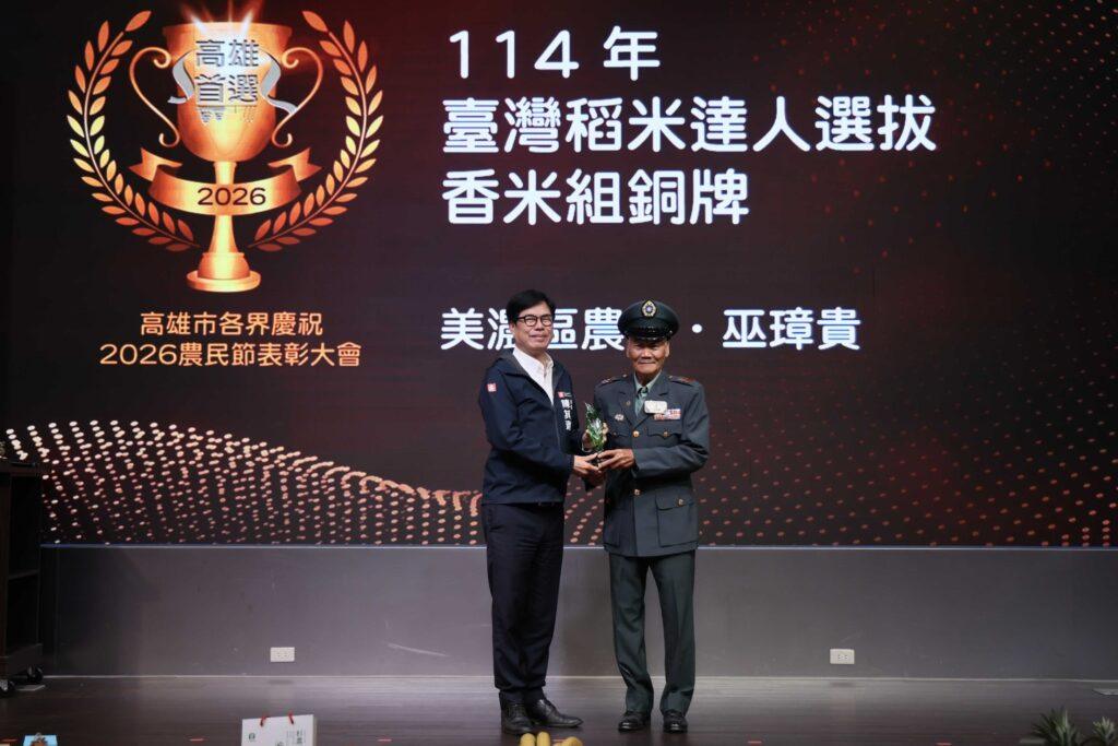 高雄市農會舉辦農民節表彰大會,高雄市長陳其邁今(23)日出席表揚優秀農民朋友,感謝農友長年的辛勞與貢獻,並肯定農民精進技術,創造高雄優質農產。他表示,市政府核心任務在於配合農會,全力照顧農民,為減輕農會負擔,去年冷鏈設備補助達1,000萬元,今年將持續加碼、投入更多資源。同時,陳其邁也特別感謝議長康裕成與議會對農業預算的支持,為高雄農業轉型與技術設備提升提供最強後盾。