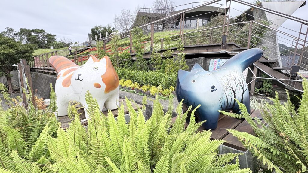 步出貓空站前往觀景平台,轉角處小貓咪公仔像是跳躍於花間的小精靈恣情嬉戲,引領視覺轉向大斜坡。冬日的空氣清爽,斜坡上的各色四季海棠更加純淨、俐落,即使在最靜謐的季節,花海依舊明亮,為寒冬添上一抹溫度。透過紅、粉、白等多色花朵的排列,呈現層次分明的花帶與周邊茶園景色相互輝映,營造自然又具識別性的入口意象。