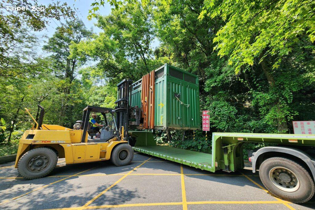 臺北市立動物園熱帶雨林區即將迎來局部場地更新,熱帶雨林區的動物居民們也陸續準備搬家,暫時借住在其他區域等待場地更新完成。今(4月10日)天上午展開亞洲象「友信」、「友愷」的「重量級」搬家任務,兩頭亞洲象展現例行訓練的成果順利進入搬運貨櫃,透過巨型吊掛機具、大型貨車等重量級載運設備,讓亞洲象們緩緩搭車到非洲動物區。