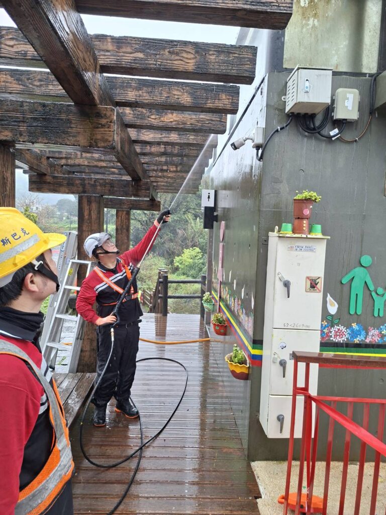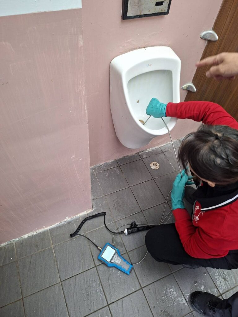 環保局表示,傳統公廁維護往往僅止於表面清掃,本次專案特別強調「預防性管理」。在花季正式開始前,已針對兩座公廁進行全面的健康檢查,利用檢知管測試氨氣濃度、風速計檢測通風功能,並以內視鏡檢視管路狀況,精準找出髒、濕、臭的根源。隨後執行專業的「深層清潔」,使用單盤洗地機與高壓清洗機清除累積的頑垢,讓公廁恢復如新,提升後續日常維護的效率。