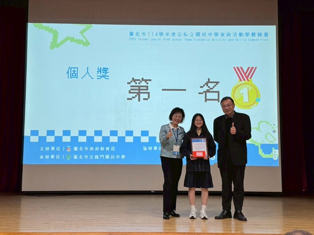 榮獲個人獎第1名的再興中學詹家蓉同學說到,從小就喜歡廚藝,也發現自己擅長手縫,因為比賽有很多不確定因素,所以必須利用更多空閒時間練習手縫與烹飪,更感謝老師辛勤教學與陪伴練習;個人獎第2名的民生國中許家熒同學說到家政技能的能力在生活中相當重要,希望藉由參與競賽,讓更多人看見家政的價值與實用性;個人獎第2名的中山國中侯言臻同學說到,準備過程中嘗試許多方向,花費相當時間才確認作品,期間遇到瓶頸,在學長姐的經驗指導下才能順利突破,感謝老師、家人與同學一路上的支持;最後個人獎第3名龍門國中羅優美、衛理女中(國中部) 黃尹勻及成淵高中(國中部) 盧宥均皆表示,從小喜歡烹飪或手作,因有家人及朋友支持,才能讓自己堅持不放棄的勇敢向前付出。 未來,教育局將持續推動多元教育活動,鼓勵學生跨域學習,培養更多具備創新與實踐能力的未來人才。 (新聞圖片來源:臺北市政府教育局『