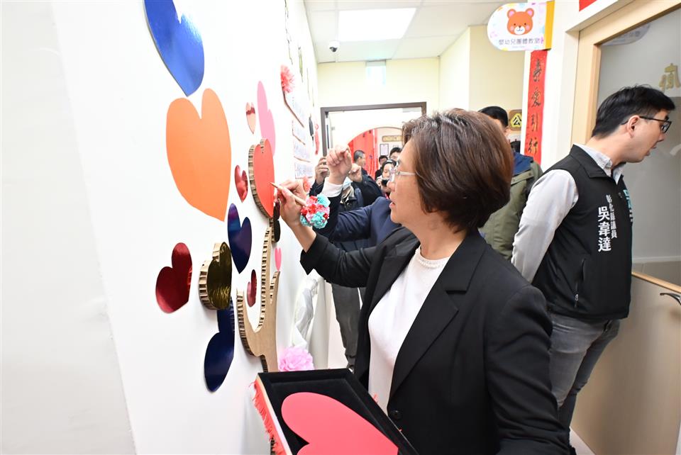 王縣長表示,這棟大樓部分工程已在收尾,但考量到在地鄉親對托嬰中心與親子館的需求非常迫切,因此優先啟用這兩項設施,這是彰化縣第10間公設民營托嬰中心,也是第10間育兒親子館。感謝議長謝典霖及所有議員對預算的支持,全縣目前已規劃37間托嬰中心及20間親子館,此次工程獲得中央補助509萬4,816元,縣府自籌2,263萬7,139元,總經費達2,773萬1,955元。2樓托嬰中心可收托60位未滿2歲的嬰幼兒,每月托育費僅需7,000元,有效減輕家長負擔;6樓則是專為6歲以下孩童設計的親子館,現場不僅有專業保育員指導,也是提供家長交流育兒的空間,歡迎親子同樂,蒞臨體驗優質的托育服務。
