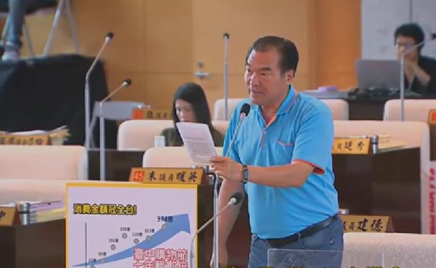 台中市議員賴義鍠於4月1日專案報告質詢時表示,台中市政府連續七年舉辦「台中購物節」,活動已逐漸成為台中重要城市品牌之一,不僅帶動商圈發展,也提升城市能見度與觀光消費,整體消費金額更在七年間大幅成長,顯示活動具有相當經濟效益與市場影響力。