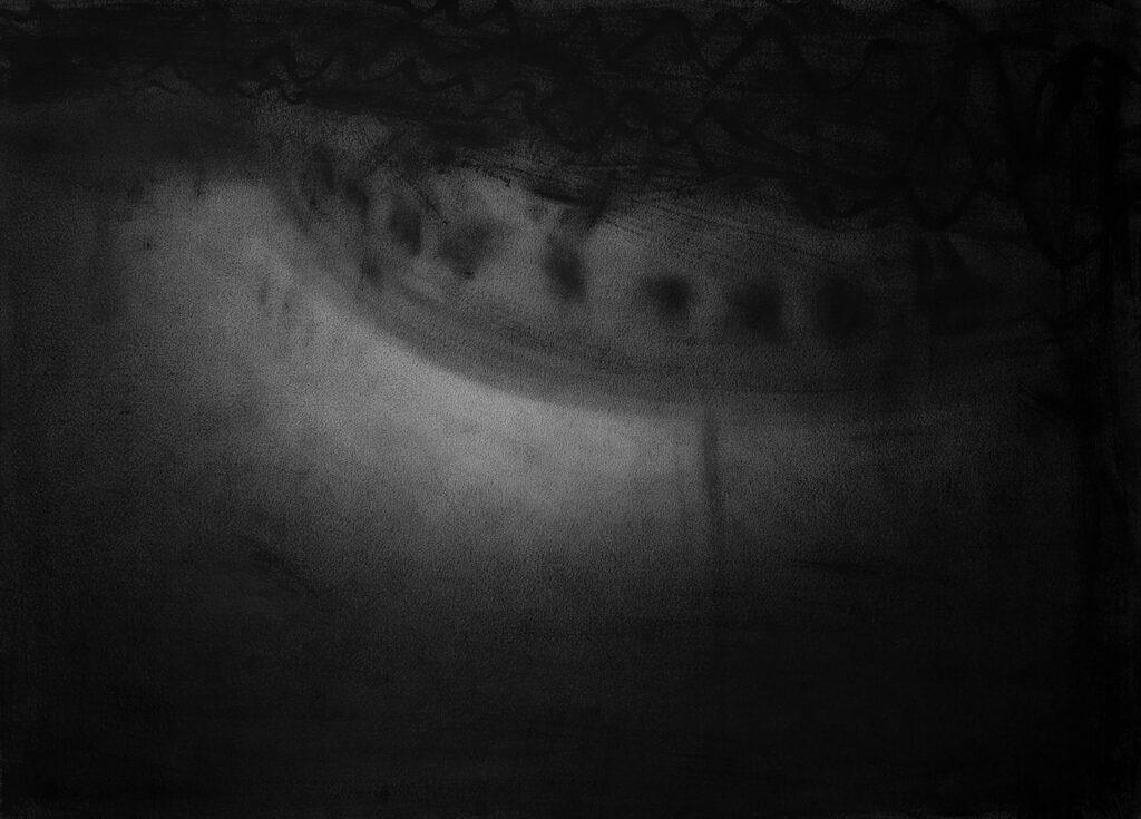 此次展出作品「夢露」系列中,彈甲一運用有別於傳統技法及媒材,來回應水墨傳統精神中的「筆墨語境」,並檢視當代生活環境上的劇烈變化。近幾年新聞中不斷播放世界各地的氣候災難,千里之外的消息似乎離我們很遙遠,然而頻頻發生的天災卻讓人覺得近在咫尺。往日的美好世界彷彿一夕崩壞,不由自主讓人想到佛教的「末法時代」似乎悄悄到來,「成住壞空」彷彿成為生命中的必然。