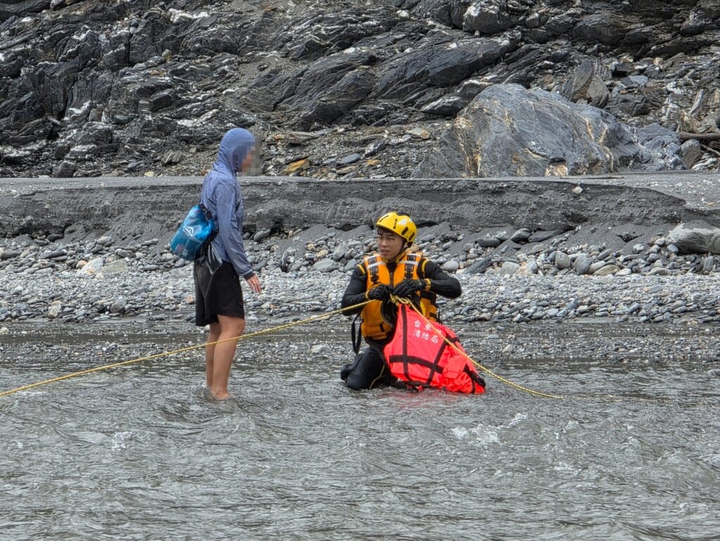 台東縣延平鄉今(18)日中午,轄內北絲鬮溪發生一起溯溪受困事件。一名民眾於山區溯溪時因故受困於對岸,由於身上缺乏保暖衣物且手機電力有限,情況一度緊急。台東縣消防局獲報後迅速馳援, 以「空拍機精準定位」結合「水域專業戰技」,不僅快速尋獲待救者,更在湍急溪水中順利將民眾平安救出,成功化解危機。