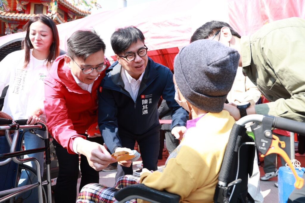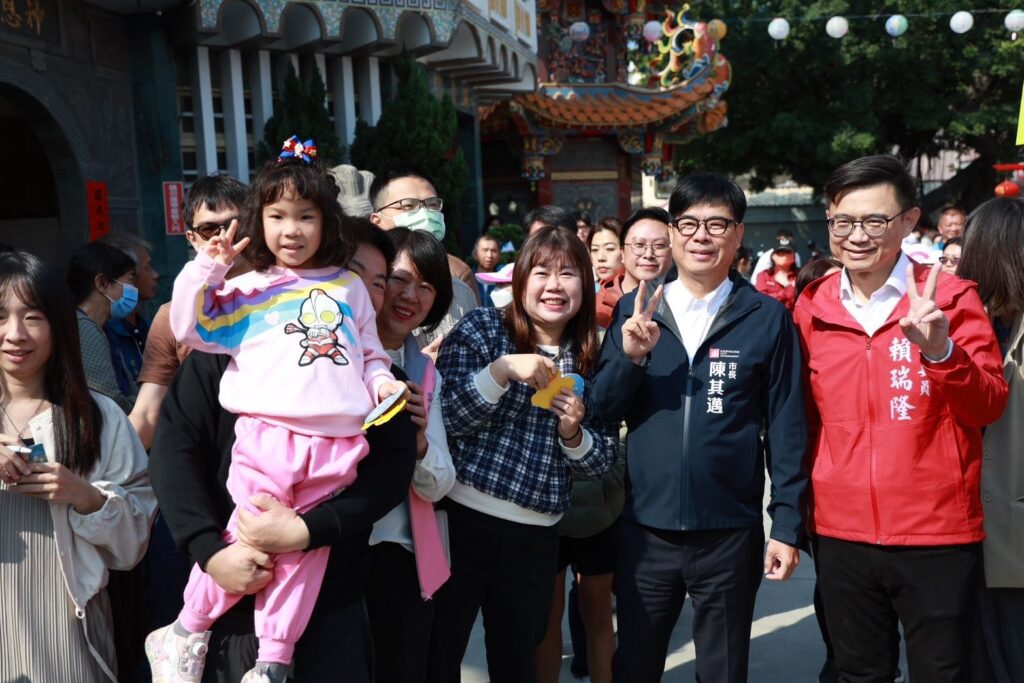 大年初二迎新春,高雄市長陳其邁今(18)日走訪彌陀彌壽宮、梓官中崙城隍廟參香祈福,現場發送小紅包為市民朋友送上新春祝福,排隊人潮絡繹不絕,現場氣氛熱鬧;隨後陪同總統賴清德前往岡山壽天宮及前鎮鎮南宮參香,祈求國泰民安、風調雨順。下午將前往旗津中洲廣濟宮與天后宮,發送新春小紅包,與市民朋友拜年。