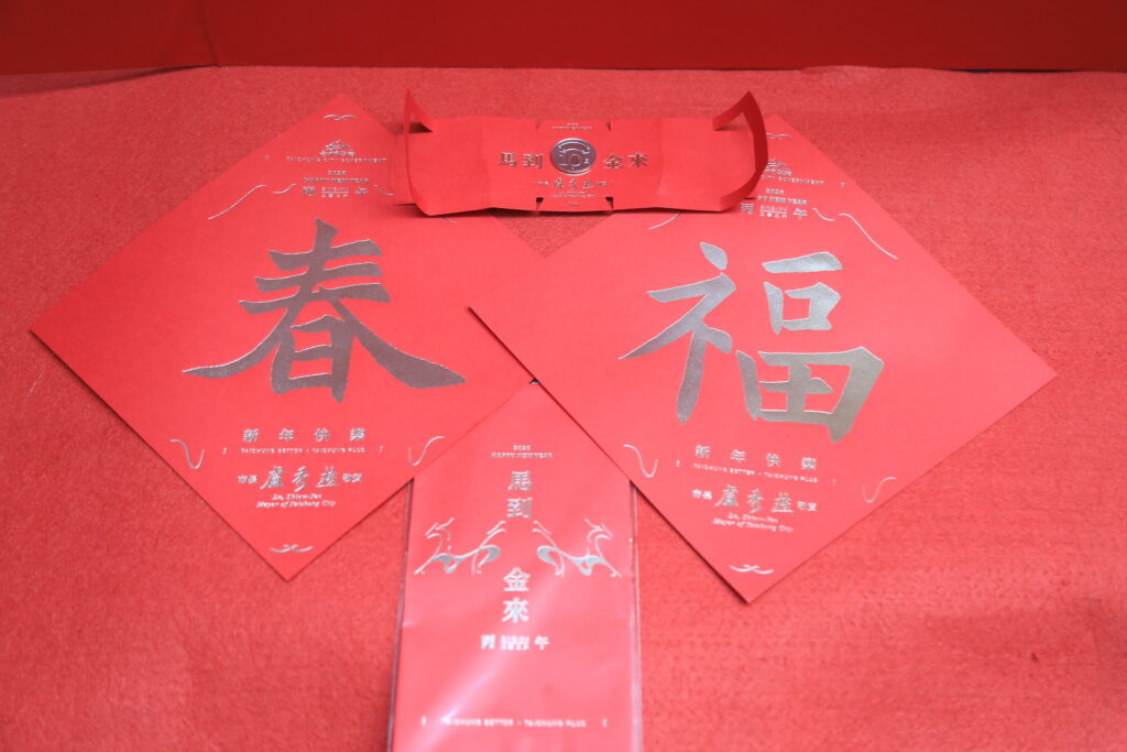 「隱藏版春聯有錢也買不到!」盧市長指出,今年請到亞洲天團也是台中之光的玖壹壹來執筆春聯,消息一曝光,聽說南北二路全國各地都搶著要,因數量十分有限,市府對此也傷透腦筋,會想盡辦法趕印給大家,也感謝玖壹壹為台中執筆,希望大家恭喜發財、馬上有錢!