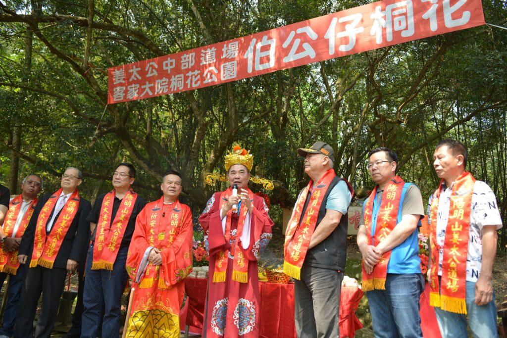 苗栗銅鑼姜太公中部道場客家大院年度桐花季熱鬧登場,並於4月11日舉行開鑼儀式,邀請苗栗縣長鍾東錦化身「伯公仔」(土地公),於園區兩百年土地公廣場發送象徵「黏錢」招財好運的客家麻糬、發財米,為民眾帶來財運與平安。鍾縣長也邀請全國民眾一起到苗栗賞花旅遊,欣賞浪漫的桐花雪。