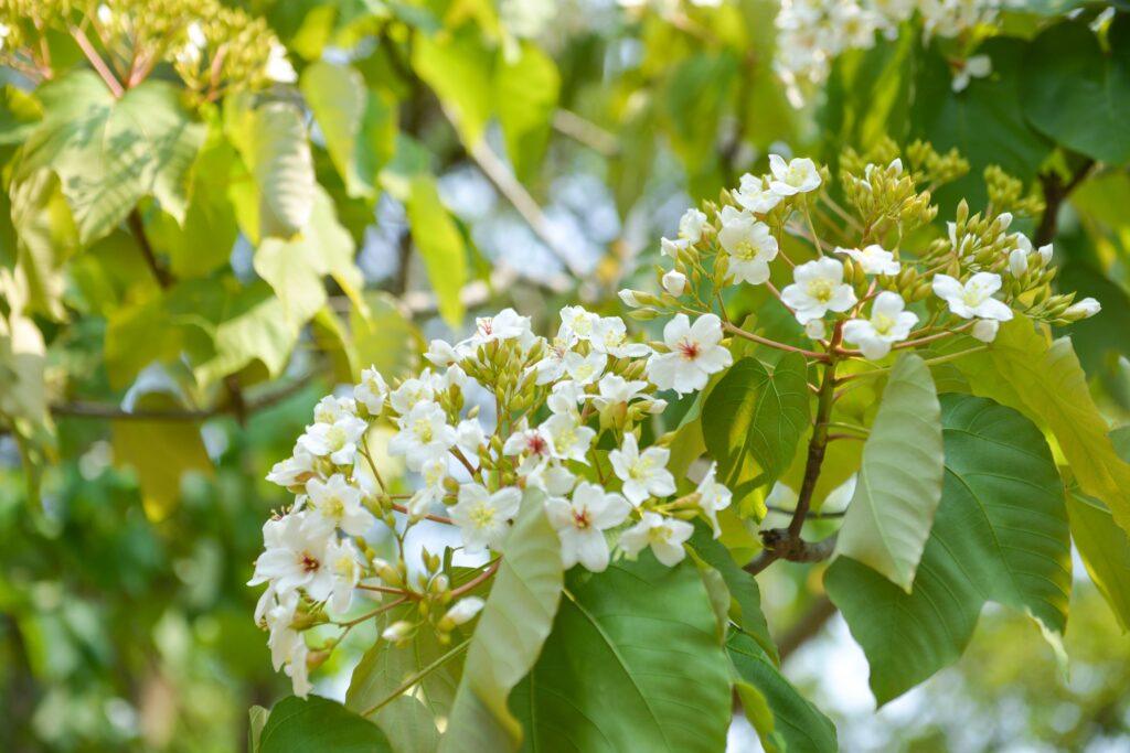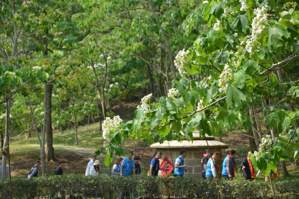 姜太公道場主席羅世新表示,客家大院園內種植上萬株油桐花樹,並建置完善賞花步道系統,讓民眾可在花季期間悠遊林間,近距離欣賞桐花綻放之美。今年以「伯公桐花林」作為賞桐主軸,精選「桐花王」、「桐花后」、「桐花順」等人氣打卡點,串聯完整賞花動線,雪白桐花如雪飄落,鋪滿山頭,形成經典「五月雪」景致,展現客庄春季限定的浪漫氛圍。