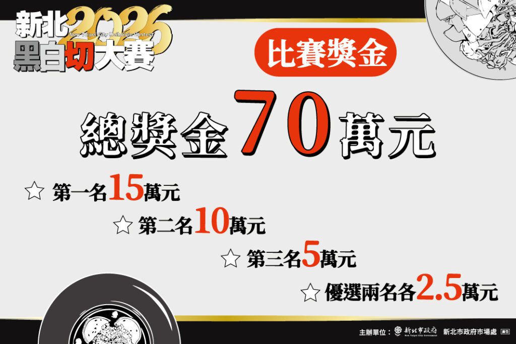 由新北市政府市場處舉辦的「2026新北黑白切大賽」報名正熱烈進行中!這場被譽為新北版「黑白大廚」的盛事,不僅是一場廚藝實力的競技,更是一次角逐新北豬肉料理巔峰的機會。本次大賽祭出高達70萬元的總獎金,廣邀新北廚藝好手運用國產豬肉,在「經典傳統」與「職人創新」兩大組別中一決高下,報名截止日為2月27日,呼籲隱身於巷弄市場與餐廳飯館的高手把握機會。