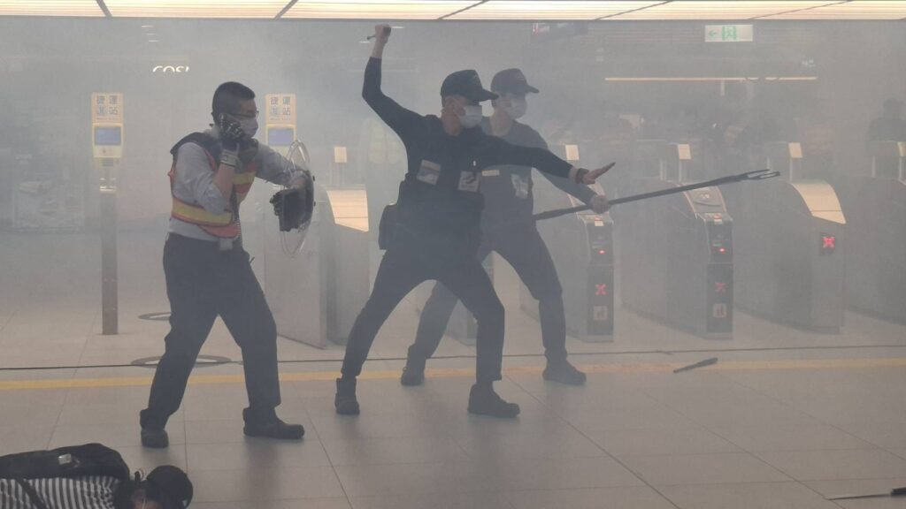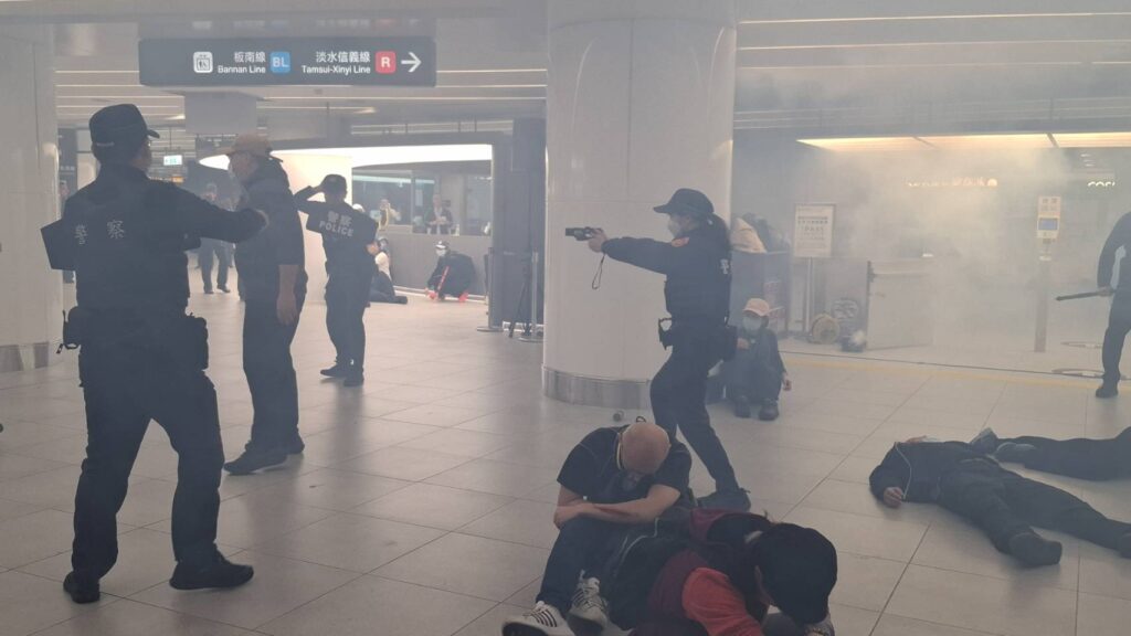 演練過程中,1名歹徒於現場遭鐵路警察制伏逮捕,另3名歹徒逃往捷運淡水信義線臺北車站B3層三鐵共構區,分散投擲汽油彈及煙霧彈,且持刀攻擊民眾。