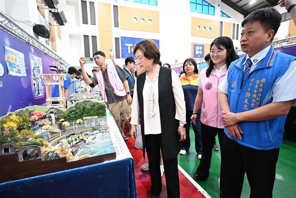 王縣長進一步指出,今天活動現場設置27個攤位,除展示技藝班學生的學習作品,也結合技術型高中、仁德醫護管理專科學校、勞動部勞動力發展署中彰投分署、在地商家畯富農場及279順福天然農場等資源,規劃多元職群體驗活動。感謝各位用心辦理技藝教育的校長及老師,讓孩子打下良好技能基礎,引領彰化子弟持續進步、自信前行,站上更廣闊的舞台。