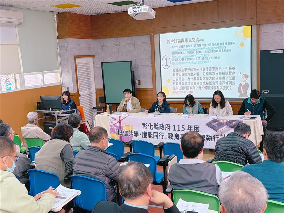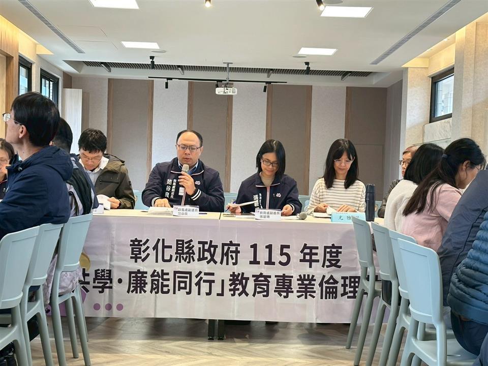 為深化教育專業倫理、營造校園廉潔環境,彰化縣長王惠美縣府團隊推動「誠信共學.廉能同行」專案,首先邀集全縣211所國中小及高中校長,分別於鹿港區、和美區、北斗區、員林區、溪湖區、田中區、二林區及彰化區舉辦8場次校園廉潔治理座談會。以學習專業知能出發,同時培養風險辨識能力,邀請彰化地方檢察署檢察官與談,透過專業觀點與案例交流,強化法令與廉潔意識。期望校長以身作則,逐步擴展至行政團隊、全體教師及未來教育人才,實踐友善校園廉潔治理。