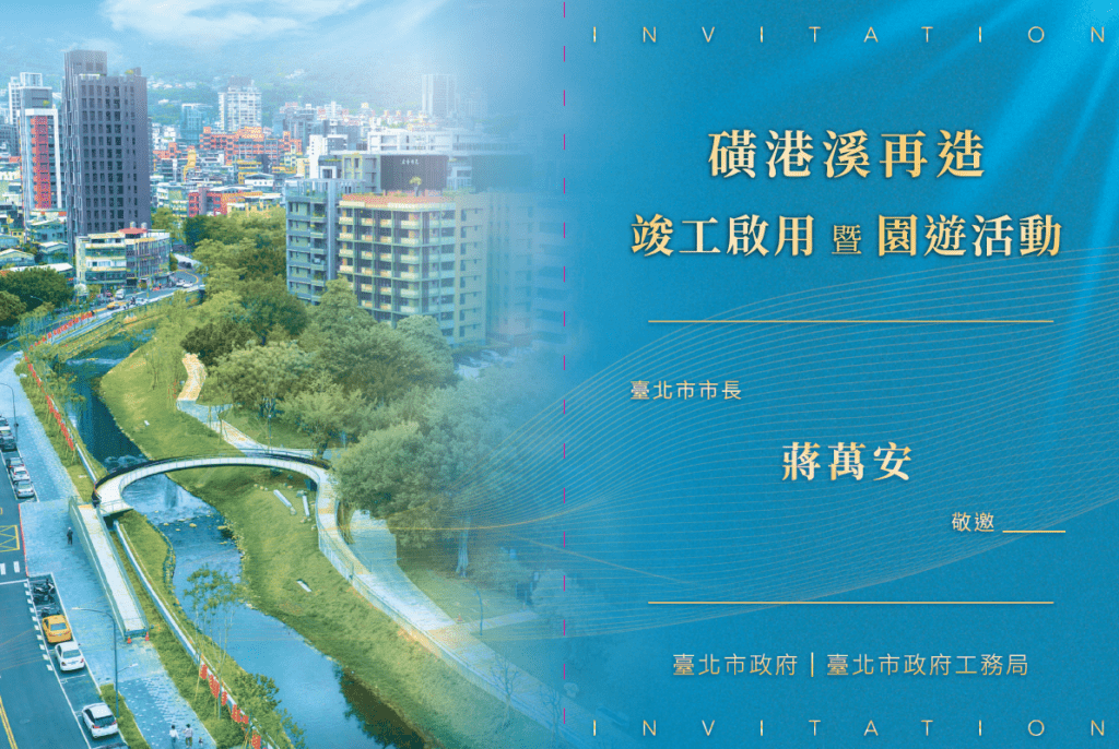 臺北市政府訂於115年4月18日(星期六)上午舉行「磺港溪再造工程」竣工啟用暨園遊活動,將由臺北市長蔣萬安主持竣工啟用典禮,並邀請民眾、社福團體、相關單位及地方人士參與同樂。