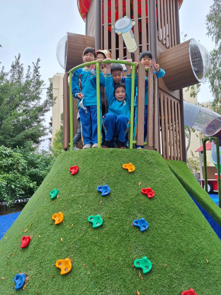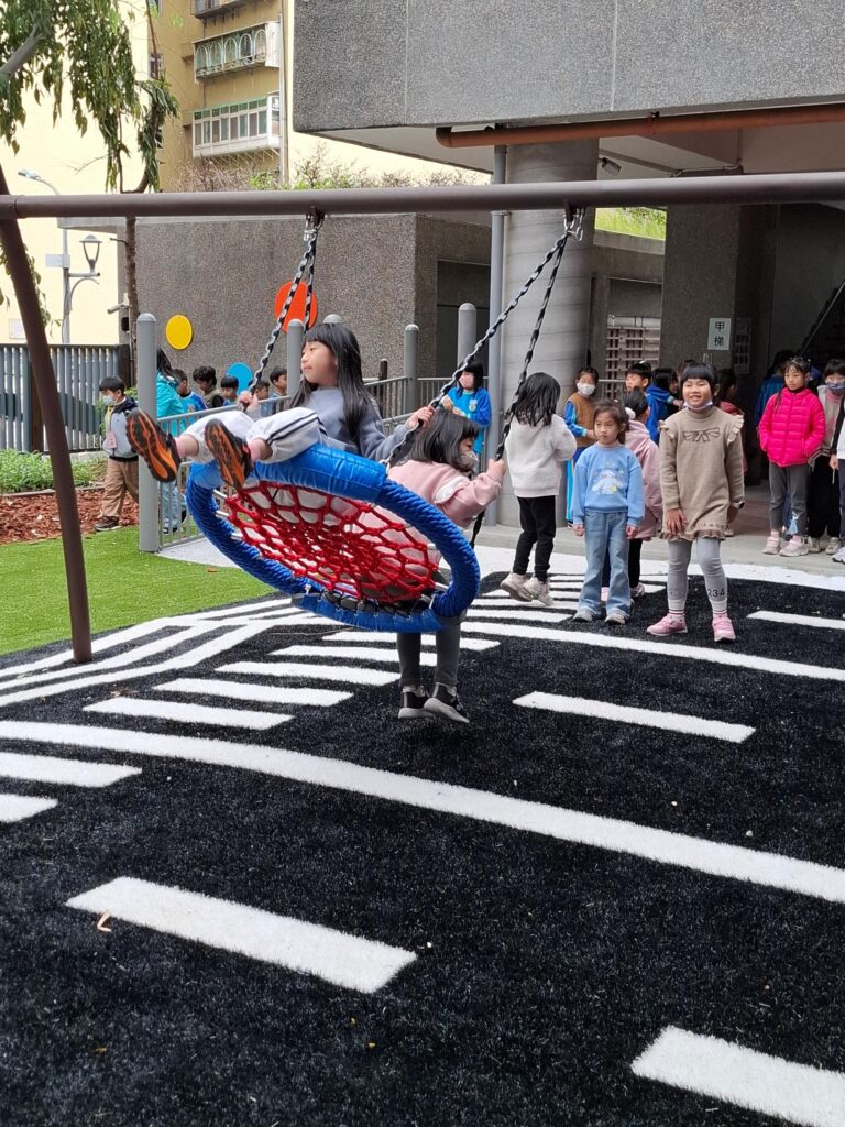 為確保孩子能安全遊戲,學校於啟用前即將使用方式與安全教育融入體育課程,下課時間安排教師與志工陪伴引導。學生回饋充滿驚喜與笑容,五年級陳昕妍表示「刺激的溜滑梯與鞦韆最令人難忘」,一年級廖品寰興奮的分享從勇闖奇島高處滑下來「真的好刺激」,三年級彭嘉怡也說「不論自己玩或與朋友一起,都能玩出不同的樂趣」。教師們一致肯定共融式遊戲場的教育價值,認為多元遊具能促進孩子的肢體發展、感官統整與同儕互動,讓不同能力與需求的學生都能共同參與、快樂成長,實踐共融教育精神。