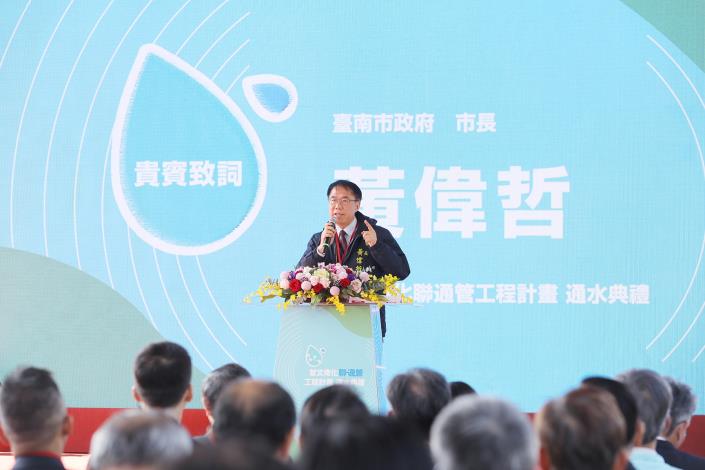 市長黃偉哲表示,水資源是極為珍貴的公共資源,台灣雖然年雨量充沛,卻因地形與蓄水條件限制,被聯合國列為水資源相對稀缺的國家,南部地區更曾歷經百年大旱,穩定供水始終是重要課題。此外,過去南化水庫在颱風或豪雨期間,經常因蓄水容量有限而自然溢流,每年溢流水量高達約千萬噸以上,因此,此次透過曾文、南化及烏山頭水庫的聯通管工程,將嘉南平原主要水庫系統有效串聯,未來可將南化水庫多餘水量調節至烏山頭水庫蓄存,並由曾文水庫發揮整體調節功能,大幅提升水資源運用效率。