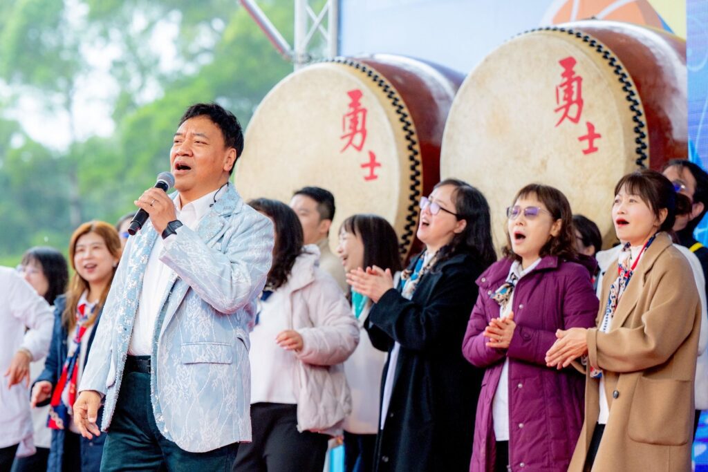 民政局表示,今日升旗典禮活動邀請民歌歌手施孝榮登台獻唱,以渾厚溫暖歌聲為新年揭開序幕;國軍二一砲指部官兵進行巨幅國旗展旗,展現磅礡氣勢;樂天女孩則帶來「催落曲」帶動跳,邀請全場民眾一同拋出象徵國旗意象的「勝利彩帶」,為桃園新年注入祝福與希望。