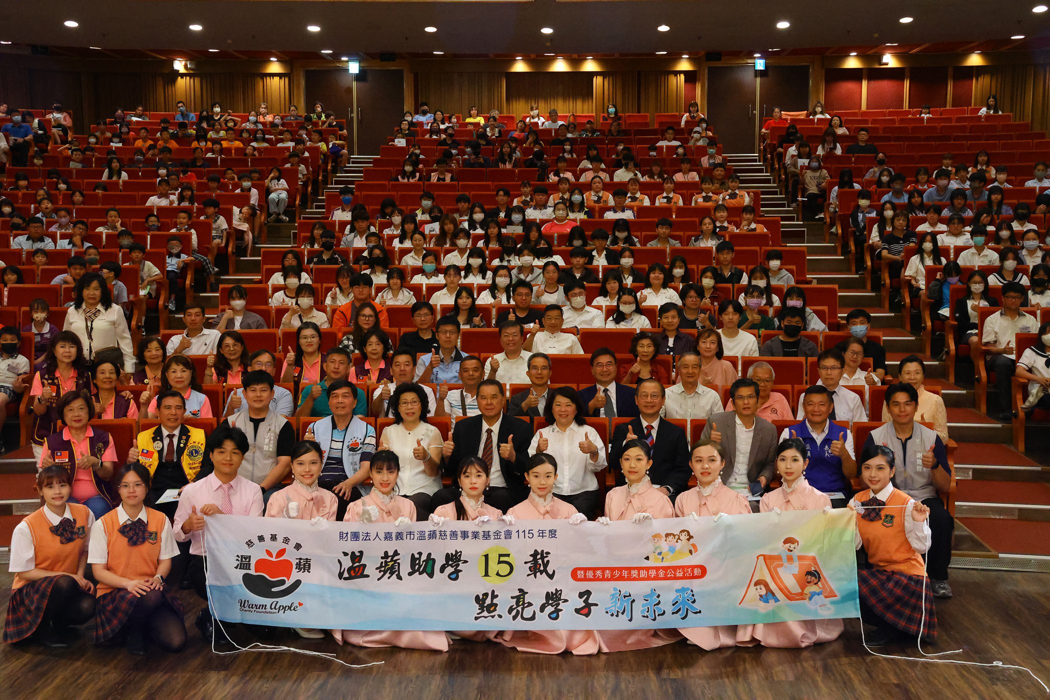嘉義市溫蘋慈善基金會資助學生邁入第15年,近年擴及鄰近雲嘉地區,累積資助超過6千位學子。今(19)日舉辦「溫蘋助學十五載 點亮學子新未來」獎助學金頒發典禮,共資助350位來自弱勢家庭的學生,對象涵蓋國小、國中、高中及大學生,協助學子安心就學、持續追求夢想。嘉義市長黃敏惠受邀出席,感謝溫蘋慈善基金持續貢獻,與各界貴賓、受獎學生與家長齊聚一堂,共同見證這場充滿愛與希望的公益盛會。