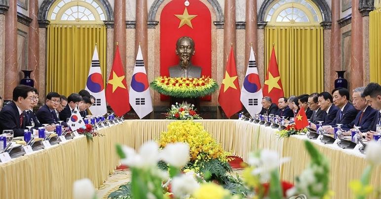韓國總統李在明今天傍晚於河內與越共總書記蘇林舉行雙邊峰會,加強經濟聯繫和供應鏈協調。報導稱,雙方簽署了12份關於能源、基礎設施、技術等領域的合作備忘錄,是彼此供應鏈多元化的關鍵夥伴。
