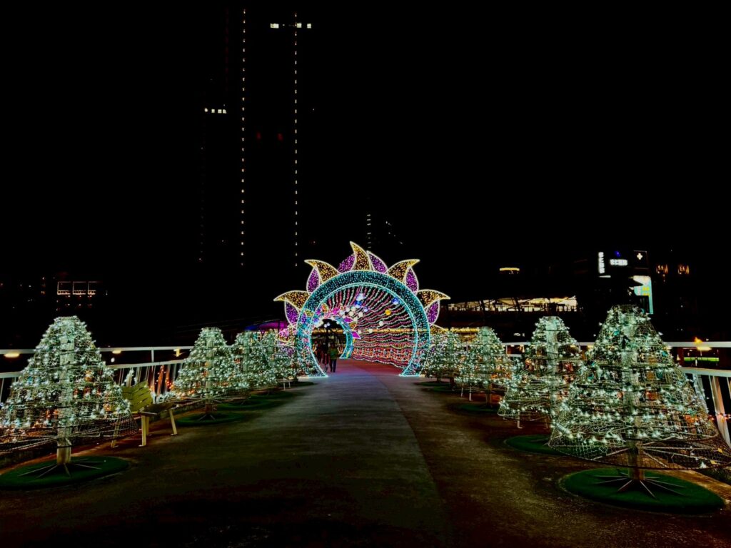 黃裕斌處長另指示,辰光橋光雕展自2月14日情人節期間所營造的夢幻光影廣受好評,展演將配合春紛節延續至3月21日及3月22日,讓音樂及光影交織出跨時代的感動時刻,民眾在音樂、光雕與河景陪伴下,留下專屬彼此的浪漫回憶。展演於每晚18時至22時點燈,誠摯邀請民眾搭乘大眾運輸前往新北大都會公園,在白色情人節至春紛節活動期間,把握限定浪漫時光。