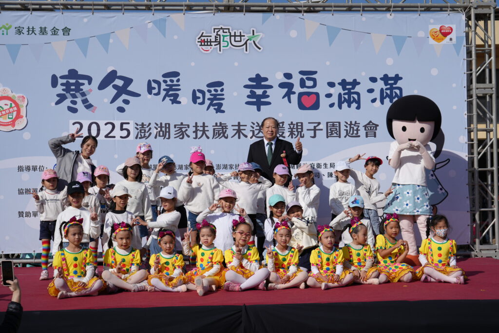 【本報訊】 澎湖家扶中心今(14)日上午於文澳祖師廟前廣場舉辦「歲末送暖親子園遊會」,現場集結義賣、美食、闖關遊戲及教育宣導等超過120個攤位,吸引約300戶受助家庭熱情參與,一早便湧入大批親子同樂、逛市集,現場氣氛溫馨熱鬧。縣長陳光復也特別到場支持公益活動,與民眾一同參與,並感謝家扶中心長期投入公益服務,攜手志工夥伴為孩子點亮溫暖幸福的未來。