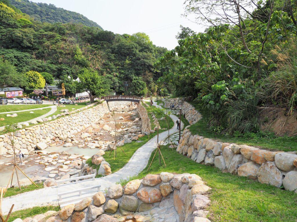 在景觀營造方面,工程設置人行便橋及河岸步道,打造連續性親水空間,並融入在地溫泉文化與山林景觀特色,使磺溪水岸由單一排水功能轉型為兼具休憩、教育與生態體驗之多元場域。