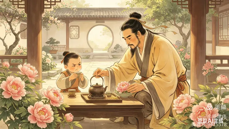 茶席間,有人吟詩:「穀雨春光曉,山川黛色青。葉間鳴戴勝,澤水長浮萍。」有人撫琴,琴聲悠揚,如泉水叮咚。孩子們則圍在旁邊,好奇地看著茶具,偶爾偷喝一口茶,皺著眉頭說:「苦!」引得眾人大笑。