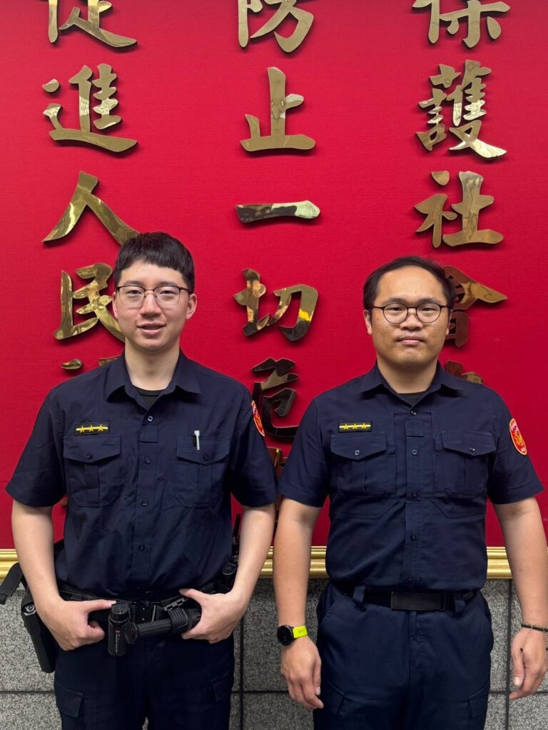 惟失主因甫從國外歸國,手機本身並未安裝台灣電信公司SIM卡,所以無法直接撥打該手機電話號碼確認是否遭人拾獲,林員研判手機極可能還在計程車上,警員林展弘聽聞此情便詢問確認失主下車地點,積極調閱下車地點周邊監視器,不到五分鐘便發現失主與妻子一行人所搭乘計程車且於該車下車之身影,隨即依循計程車車牌號碼聯繫上計程車司機,所幸計程車司機也是經驗老道,在失主下車之後發現手機遺落在車上,隨即將手機送至就近的派出所,經警員林東慶向該派出所同仁確認手機外觀確為失主所遺落在計程車上之手機,報案的父母親聽聞手機尋獲雀躍不已,激讚警員林東慶及林展弘積極、細心且不遺餘力的精神,並對警察的熱心及服務,表示高度肯定與讚揚。