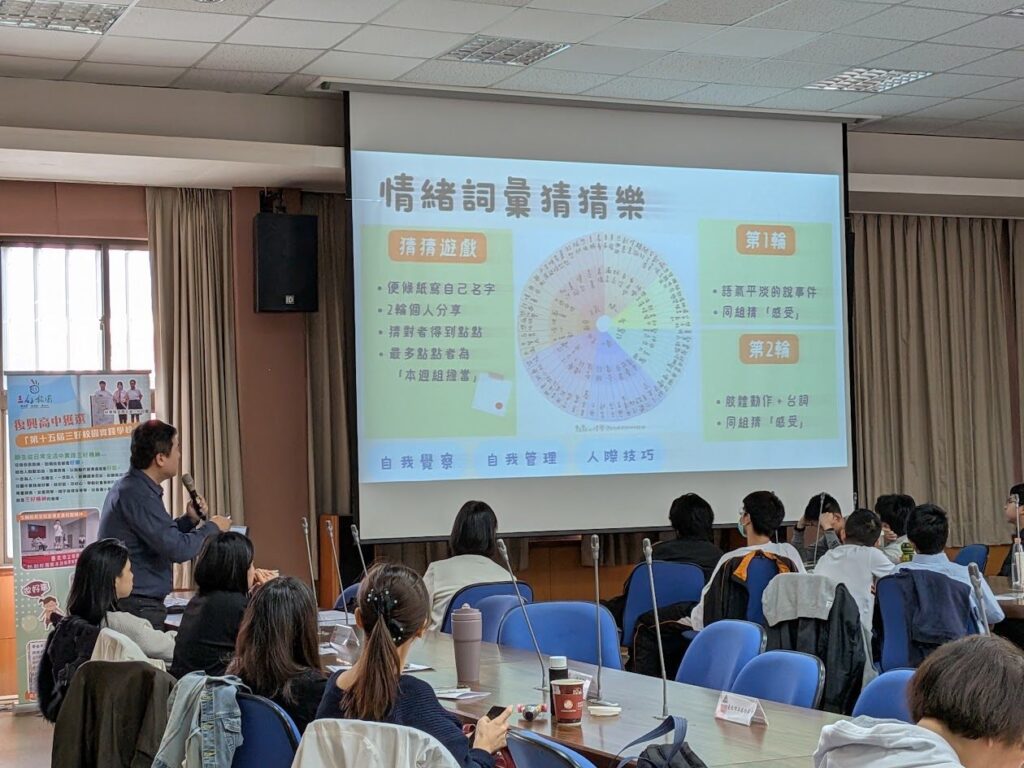 一、SEL在校園的應用與實踐:百齡、成淵、松山工農等校師長,分享SEL(社會情緒學習)在班級經營與自殺防治中的實際應用,展現如何透過情緒教育溫暖每個學生的心,協助學生建立正向的社會情緒能力。
