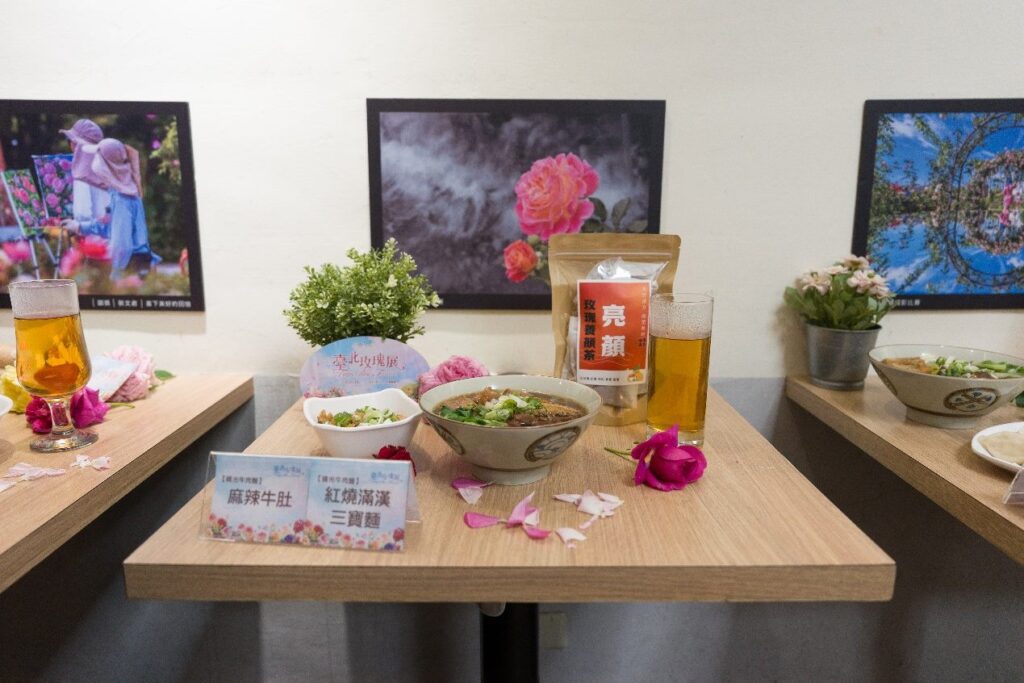來到台北市晴光商圈雙城徒步街商業促進會內,還能在晴光牛肉麵品嚐到誠意中西藥局出品的玫瑰養顏茶,在商圈內熱門店家小雞星球雞蛋糕,則可以購買到玫瑰花造型的特色雞蛋糕等結合,臺北玫瑰展將玫瑰體現在各種異業結盟上,達到經濟共好的最佳效益。