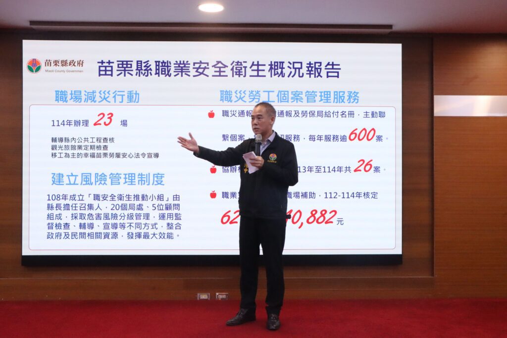 鍾東錦強調,職業安全衛生的推動並非一蹴而就,而是仰賴各界持續努力。縣府將持續整合資源,透過宣導、輔導及教育訓練,攜手企業與勞工共同打造安心、健康、永續的工作環境。每一次風險的預防,都是對生命最實在的尊重,每一件事故的避免,都是對家庭最深切的守護。最後,鍾東錦並期盼所有同仁與事業單位持續投入職業安全衛生工作,共同邁向「零職災」的目標。(圖片/新聞來源:苗栗縣政府)