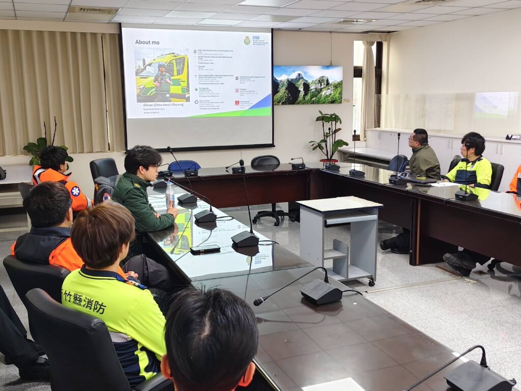 為促進國際緊急救護專業交流並提升到院前醫療服務品質,新竹縣政府消防局10日下午於消防局8樓會議室舉辦「台、英到院前緊急救護交流會」,邀請目前任職於英國南中央救護服務(South Central Ambulance Service NHS Foundation Trust)的莊家豪教官,分享英國與澳洲到院前緊急救護制度及第一線實務經驗,並與本局高級救護技術員(EMT-P)進行專業交流。