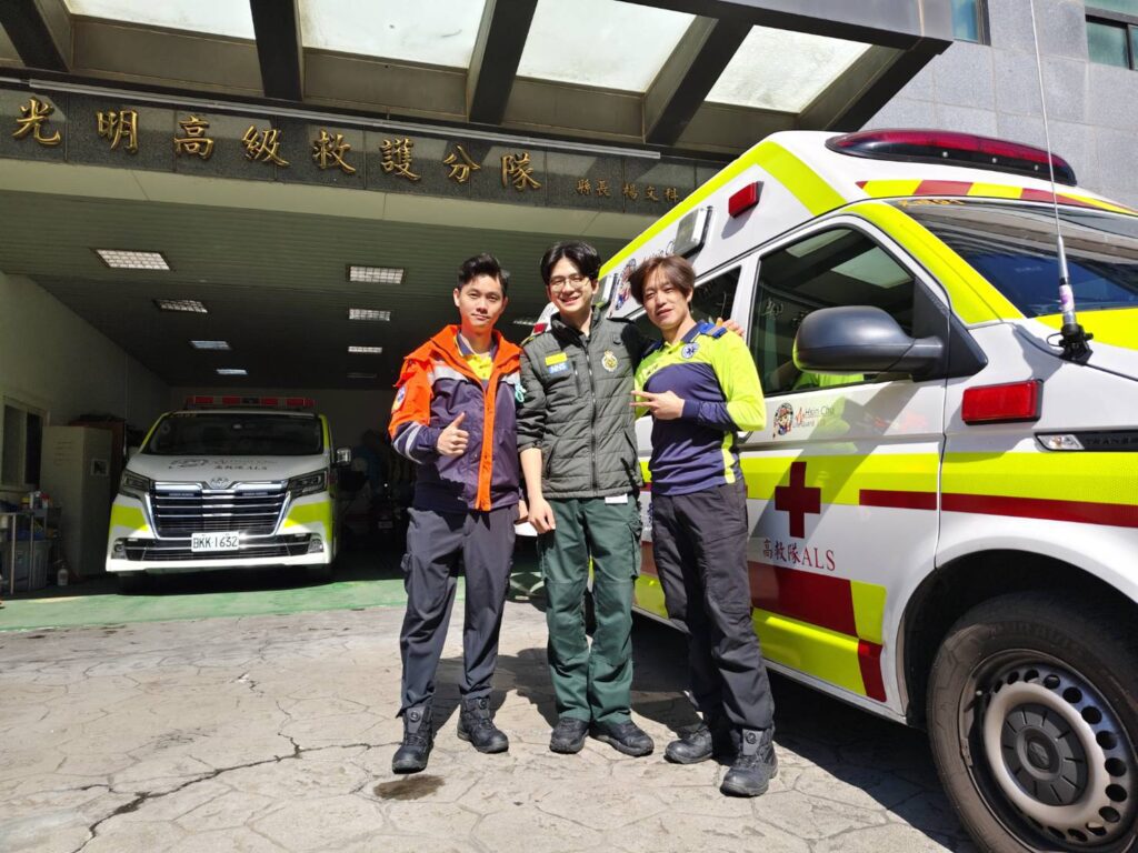 消防局指出,此次莊家豪教官返台,除了在交流會中分享歐美救護制度與實務經驗外,也於3月10日至11日前往消防局光明分隊參與救護車勤務交流,實地觀摩救護出勤流程,並與第一線救護同仁進行實務討論與經驗分享。