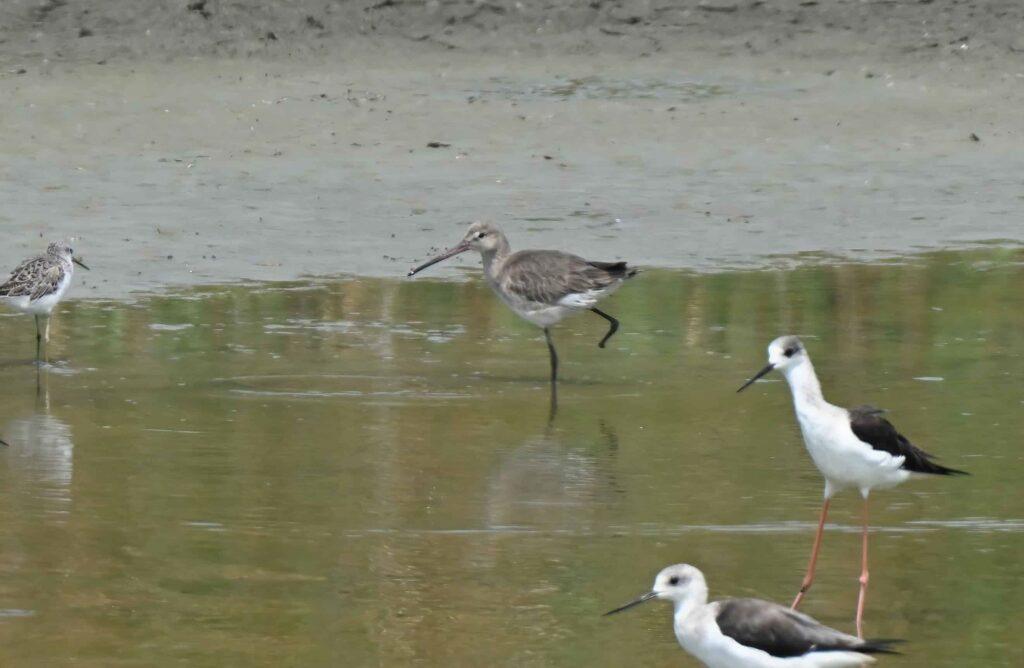 與此同時,濕地泥灘地則迎來一批春季過境水鳥,包括赤足鷸與青足鷸等鳥種,常可見其於水邊覓食、活動頻繁;此外,正值繁殖羽轉換期的鶴鷸,羽色由冬季灰白轉為深色,對比鮮明,亦成為賞鳥民眾關注焦點。另有相對少見的長嘴半蹼鷸過境停留,為濕地增添觀察亮點。
