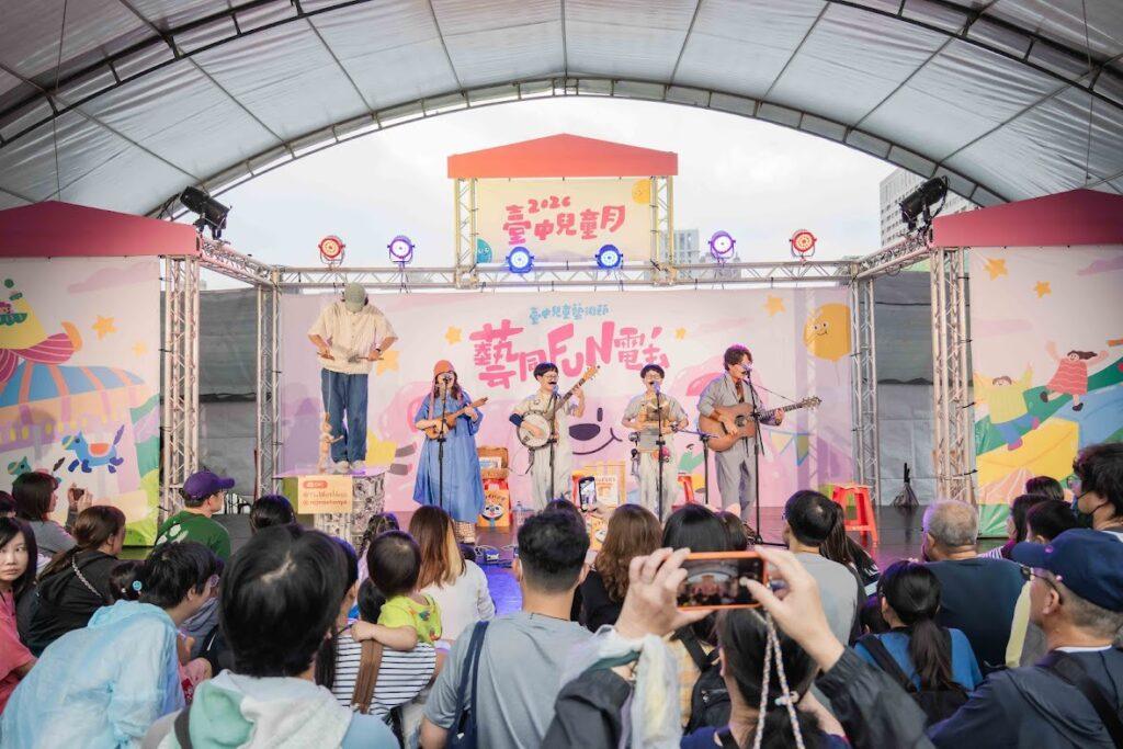 台中市政府文化局長陳佳君表示,為迎接4月兒童月,市府規劃「台中兒童月」系列活動,文化局特別在兒童節連假期間主辦「2026台中兒童藝術節」,規劃「夢之島」、「故事島」、「遊戲島」及「咕嚕島」4大主題區域,透過多元藝術表演與互動體驗,打造適合親子同樂的藝術盛會。活動首日由台灣青年管樂團帶來《恐龍學園-交通日》互動音樂會,讓大小朋友在輕鬆愉快的氛圍中學習交通安全知識;晚間紙風車劇團在圓滿戶外劇場演出經典劇目《三國奇遇》,吸引上萬名觀眾進場,將活動推向高潮。