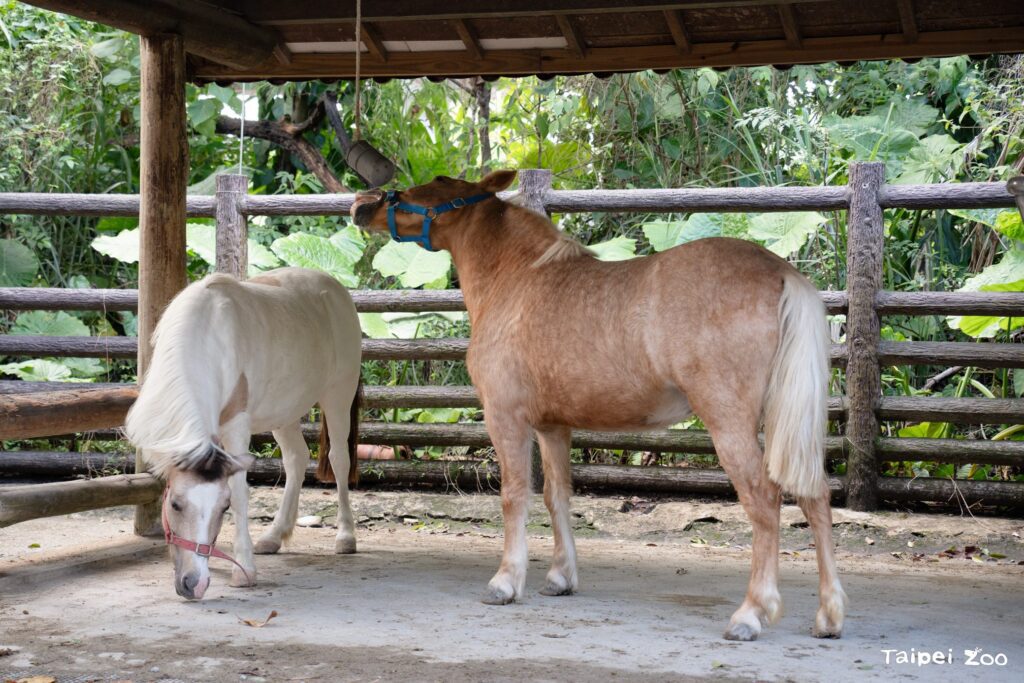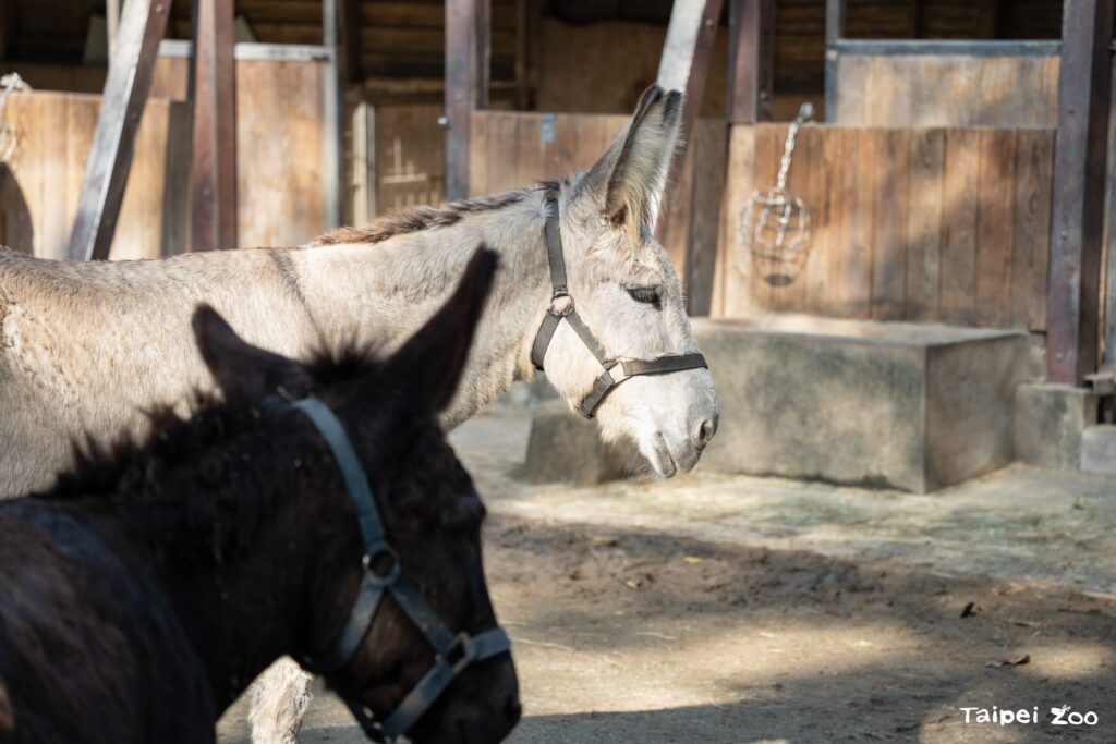 臺北市立動物園的兒童動物區同時照養著迷你馬(Pony)和家驢(Donkey),這兩種動物在分類上都是屬於馬科、馬屬(Equus)家族的成員,經過長時間的馴化與人相伴,在人類歷史上占有重要的一席之地。馬和驢的外觀也十分相近,不過從外觀特徵就可以看出端倪!家馬的雙耳較短、家驢的雙耳較修長,家馬的鬃毛通常比較長、家驢的鬃毛則是短而豎立,家馬尾巴毛髮又長又多,家驢尾巴的長毛髮比較短且集中在尾部末端。有些驢子的眼睛周邊還會有「白眼圈」一樣的顏色,不過牠們的毛髮顏色多樣,不一定每一匹驢子都有這樣的特徵。