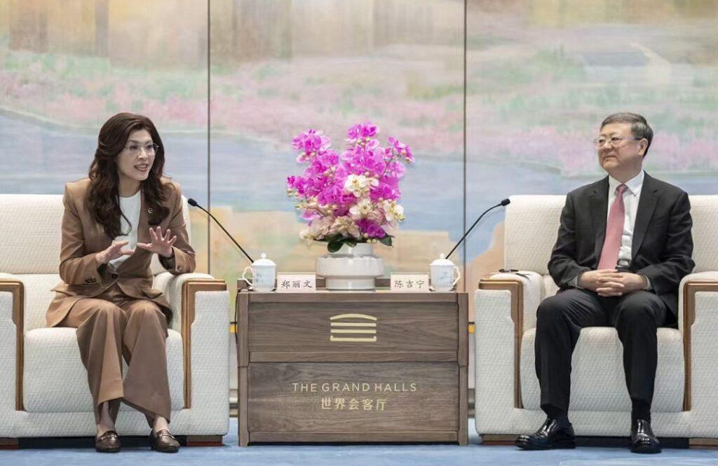 隨後,江蘇省委書記信長星在南京金陵飯店會見訪問團,對鄭麗文一行的到訪表達熱烈歡迎。他表示,江蘇長期以來是兩岸經貿與人文交流最活躍的地區之一,累計批准台資項目超過三萬兩千個,其中昆山更聚集逾三千家台資企業,展現蘇台合作的深厚基礎。信長星指出,隨著中國式現代化的推進,江蘇在科技、教育與產業創新方面的發展,將為兩岸合作開創更廣闊的空間,並歡迎台灣青年與企業前來交流發展。