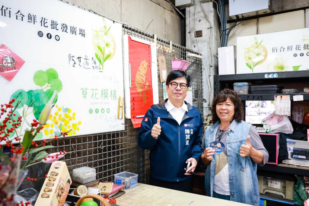 天色未亮,鳳山果菜市場與高雄果菜批發市場已人聲鼎沸,各式生鮮蔬果、肉品、熟食等商品琳瑯滿目,蔬果厚實飽滿、色澤亮眼,新鮮優質看得見。陳其邁關心販售情形,親自為攤商加油打氣,熱情的商家也親切回應祝賀,市場人情味濃厚,互動暖心。
