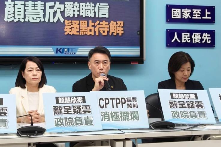國民黨立法院黨團30日召開記者會表示,對於台灣失去一位重要的經貿談判專業人才深感惋惜,但同時也對事件背後可能存在的制度問題表達嚴正關切。黨團認為,在顏慧欣辭職信內容曝光後,行政院才宣布成立外部專案小組調查,時機點過於被動,難以消除社會疑慮。