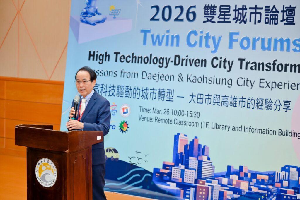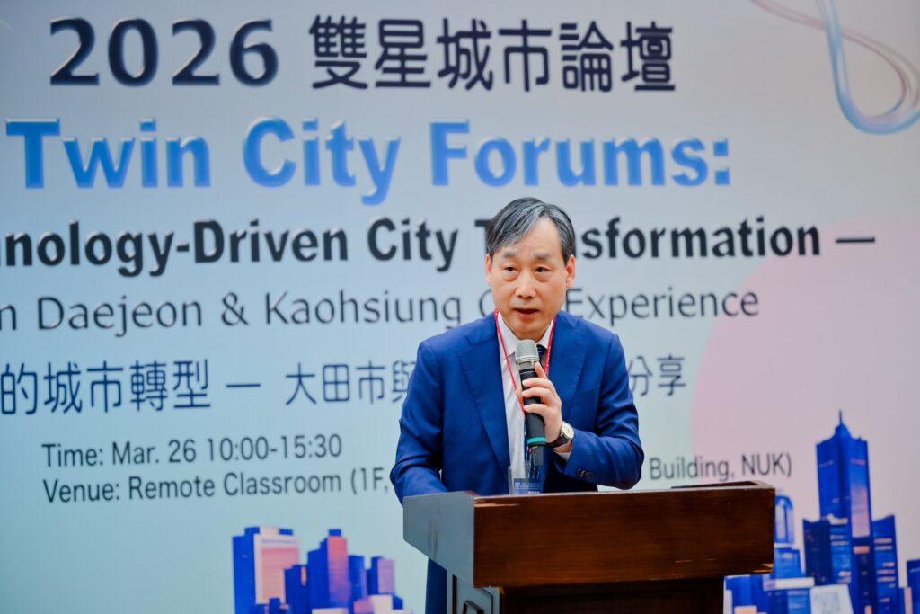 高雄持續深化與韓國友好城市交流合作!國立高雄大學與高雄市政府於26日共同主辦「雙星城市論壇:高科技驅動的城市轉型—大田市與高雄市的經驗分享」,邀集友好城市韓國大田廣域市、國立韓巴大學及台灣高雄市相關領域專家學者,產官學界齊聚一堂,聚焦智慧城市推動、半導體與高科技產業發展、人才培育、產學研合作及淨零永續等重要議題,透過專題分享及綜合座談,交流兩座城市在產業升級與城市轉型上的經驗與願景。