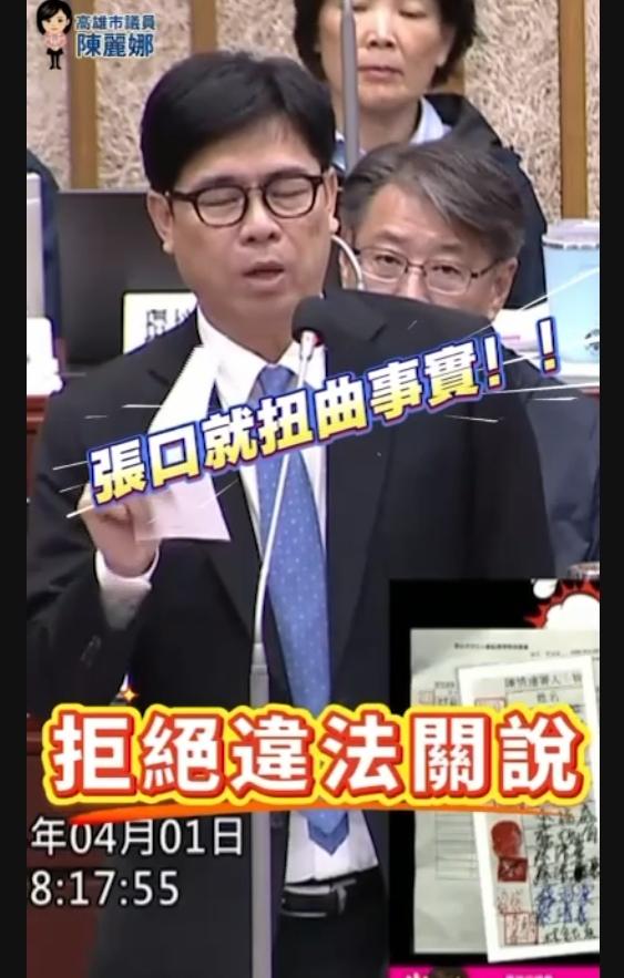 她進一步指出,市長在議會公開場合兩度提及相關說法,已涉及散布不實言論,構成加重毀謗,因此為拆穿陳其邁及市府財政局「違法關說」謊言。隨後在市議員黃香菽、白喬茵、蔡金晏等3議員陪同下,今上午十點到高雄地檢署正式對對陳市長及財政局長提告外,也將對網路上散布相關不實內容、情節較為嚴重的數十名網路使用者一併提出告訴,以維護個人清譽與政治名聲。