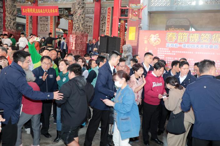 今日包括立法委員陳亭妃、郭國文、林宜瑾,市議員陳秋宏、沈家鳳、吳通龍、陳怡珍、黄肇輝、沈震東等人也到場向鄉親拜年,共同祝福市民新春如意、馬年行大運。(圖片/新聞來源:台南市政府新聞及國際關係處新聞傳播)