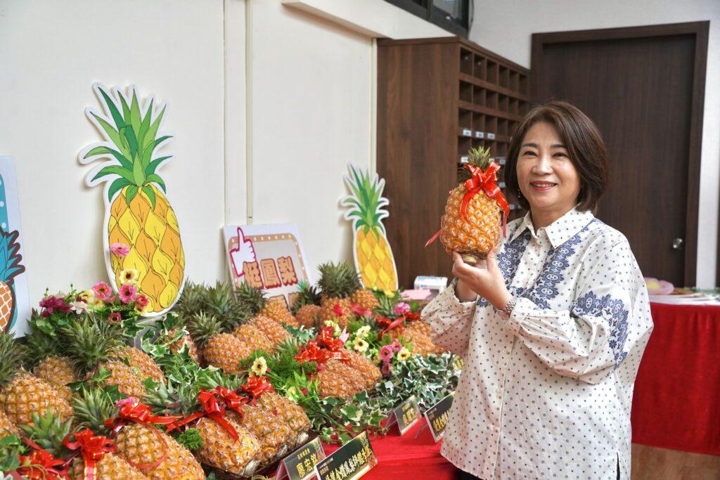 「屏東種植的鳳梨真的非常優秀!」縣長周春米表示,屏東是全國鳳梨種植面積最大的產地,近年在農民努力及農業改良場的輔導下,屏東鳳梨呈現甜中帶酸、香氣濃郁的風味,可說是精品中的精品,目前縣內鳳梨產量為10萬5,221公噸,其中外銷日本約1萬公噸,代表每10顆屏東鳳梨就有1顆銷往日本市場,未來將持續強化冷鏈技術與種植管理,讓鳳梨品質更好。